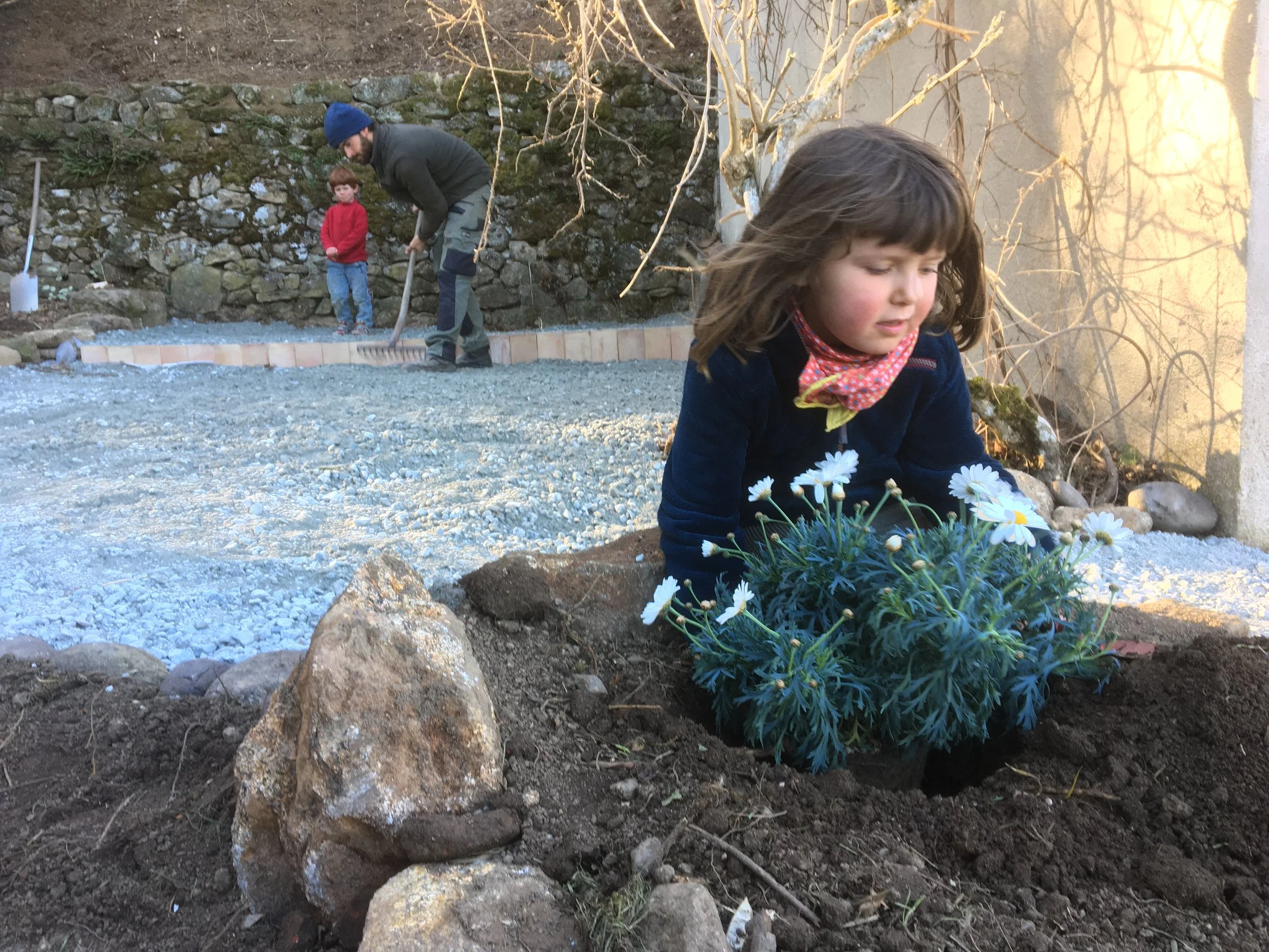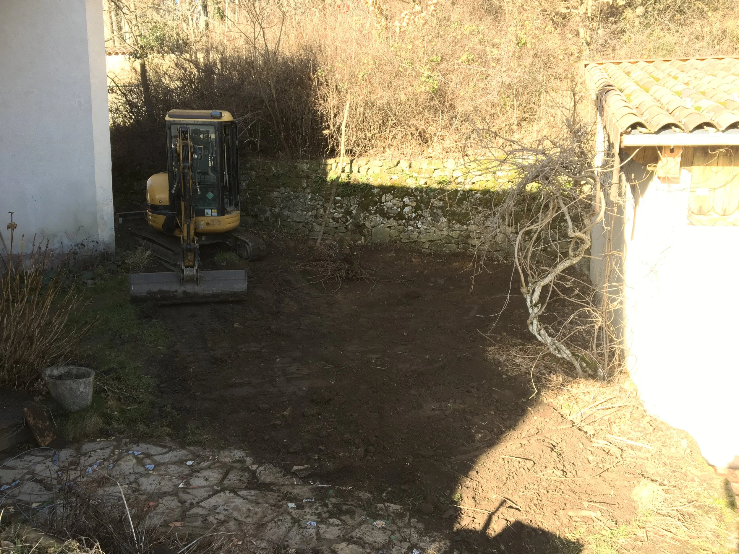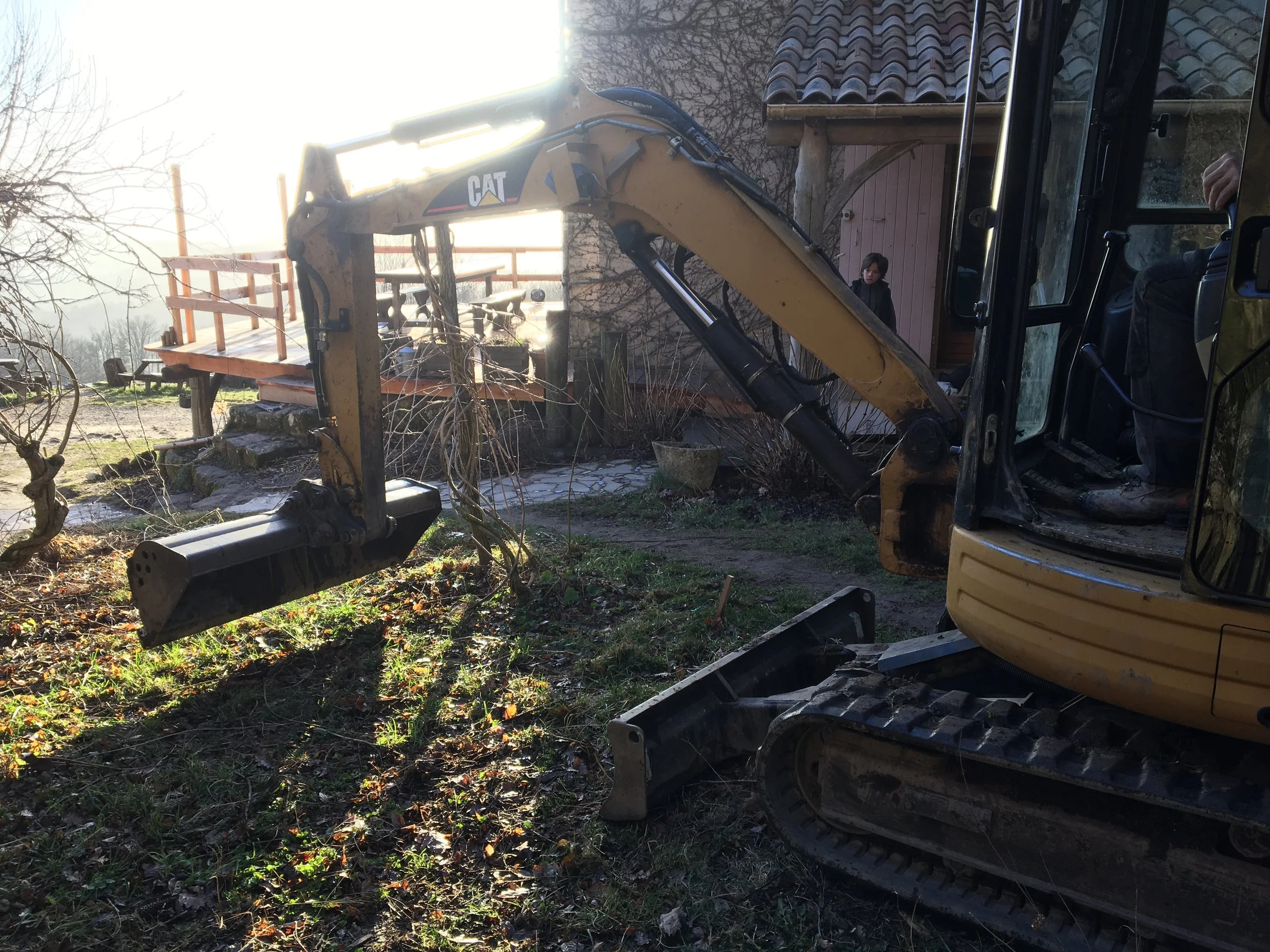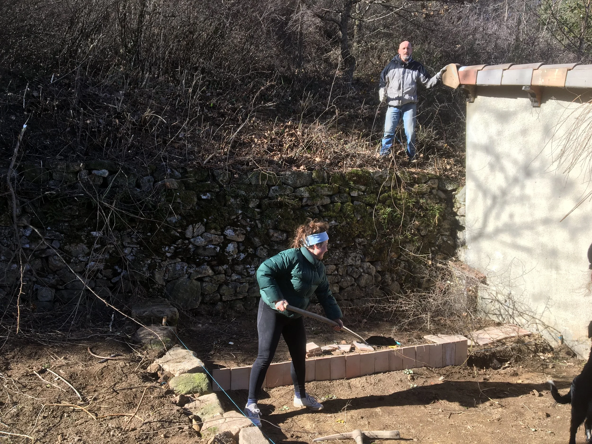 Puis nous sommes passés à l’essentiel… la recherche de l’eau! Le local n’étant pas raccordé à l’eau (et l’absence de plan indiquant l’arrivée ou la sortie d’eau), on s’est donc mit à creuser, guidés par un regard et le test réalisé par trois sourciers, nous avons continués avec les pelles et le marteau piqueur à le recherche d’un tuyau d’eau caché au minimum à 50cm sous la terrasse en dalle et en béton. Au bout d’une tranchée (qui a fait environ 4 metres) nous l’avons trouvée!